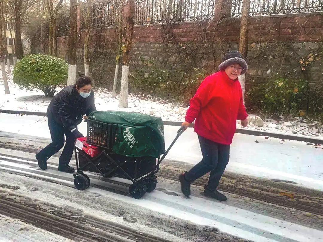 在銀座花園、常春藤及鳳凰城等住宅項目,項目工作人員使用專業設備清除車輛積雪,確保業主出行安全。此外,考慮到道路結冰對老年業主帶來的不便,各項目針對獨居老人開展走訪慰問,并為有需要的家庭提供生活品代購及送貨上門義務服務。