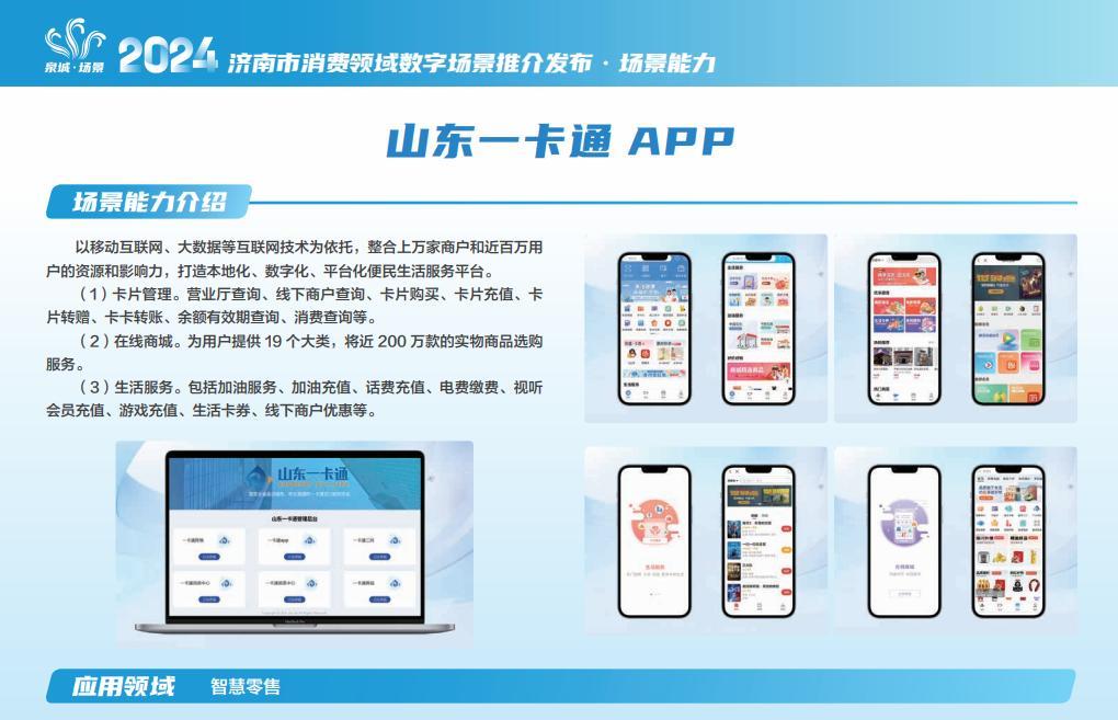 近日,由濟(jì)南市人民政府主辦的2024年濟(jì)南市消費(fèi)領(lǐng)域數(shù)字場景推介發(fā)布會(huì)成功舉辦。發(fā)布會(huì)以“創(chuàng)新消費(fèi)場景 樂享數(shù)字生活”為主題,向社會(huì)發(fā)布35個(gè)消費(fèi)領(lǐng)域數(shù)字化場景,魯商科技旗下山東一卡通APP成功入選。
