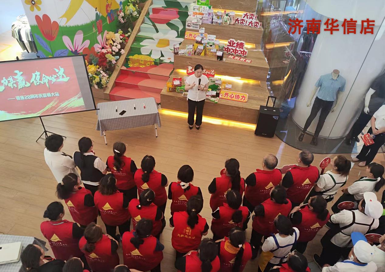 濟南和諧廣場提出要全過程指標管控、全渠道資源整合、全方位服務提升,為消費者打造消費場景和舒適體驗。濟南華信店重點介紹司慶爆品,讓大家熟知并將優惠信息第一時間送達消費者,保持與消費者零距離溝通答疑。七里山店通過直播展現出門店員工積極進取的工作態度、精誠協作的團隊精神。淄博博山店提出全體員工要精神上有面貌、行動上講務實、業績上交結果,更積極主動地去思考、去拼搏。