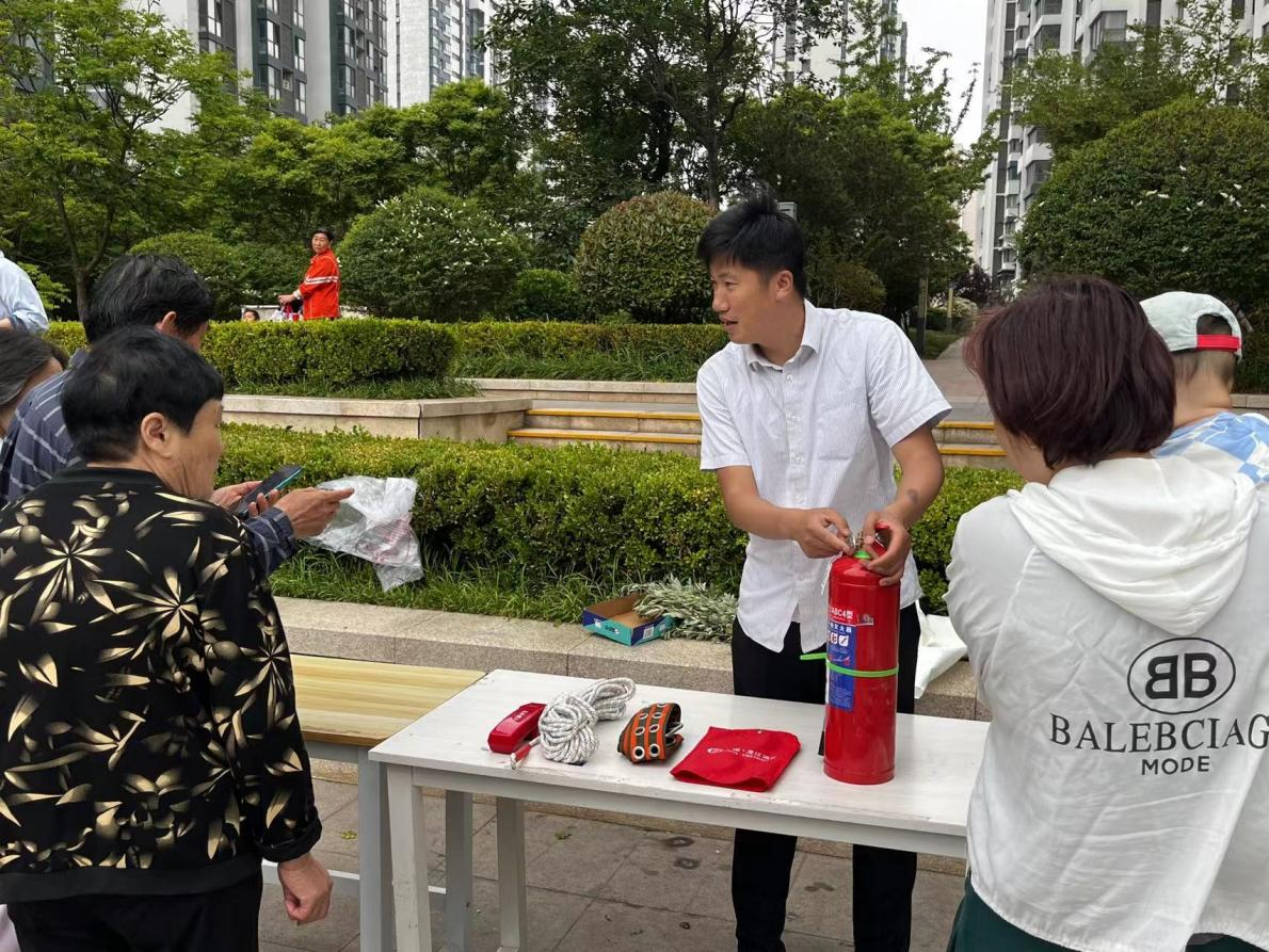 為提升廣大業主安全意識,提高業主遇到危險時的自救能力,魯商服務藍岸國際項目開展社區活動,向廣大業主普及初期火災撲救常識,同時對滅火毯、滅火器等常用消防救援器具的功能及使用方法進行了現場演示。