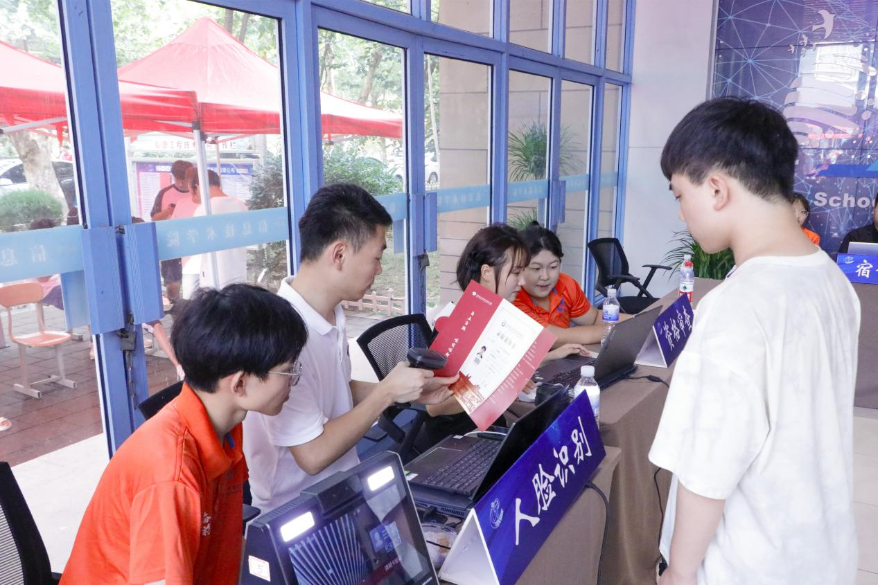 報到前,新生通過在線平臺完成繳費、查詢分班情況、選取宿舍床位,入學手續“碼”上辦;入校后,新生現場刷臉進行身份核驗,“一鍵入校”簡單高效。學校還通過微信、微博、抖音等新媒體平臺開展全方位宣傳,為新生入學提供無微不至、便捷通暢的高效服務;通過大數據平臺實時更新新生報到入校統計,動態“直播”報到進程。