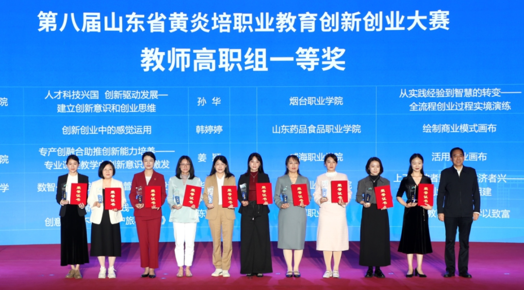 山東城市服務職院選送作品《人才科技興國 創新驅動發展—建立創新意識和創業思維》獲得高職教師組一等獎第1名,《一勺品八仙—“藍色經濟”海洋生態調味料的新引擎》獲得高職學生組二等獎;山東商職學院參賽項目《葦韻智新——草葦編原料智取與廢料回收先行者》獲高職學生組二等獎;青島酒店管理職院參賽項目《創業思維與創新方法》獲得高職教師組二等獎。