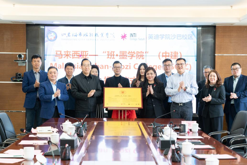 11月7日,馬來西亞-“班·墨學(xué)院”(中建)在山東城市服務(wù)職院揭牌成立。學(xué)院由山東城市服務(wù)職院與英迪學(xué)院沙巴校區(qū)聯(lián)合中國建筑第八工程局有限公司西南公司、北京市海淀區(qū)國有資產(chǎn)投資集團有限公司、凱文教育集團、亞洲國際高等教育管理有限公司共同成立。山東城市服務(wù)職院黨委書記宋寧與英迪學(xué)院沙巴校區(qū)院長Roselyn Chua Lian Hua為學(xué)院成立揭牌。山東城市服務(wù)職院黨委副書記、校長刁洪斌代表學(xué)校分別與馬來西亞英迪學(xué)院沙巴校區(qū)和北京凱文教育集團山東分公司簽訂戰(zhàn)略合作協(xié)議。