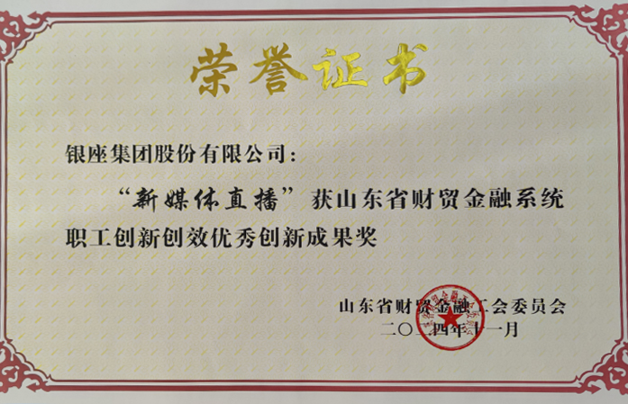 銀座集團榮獲山東省財貿金融系統創新競賽 優秀創新成果獎