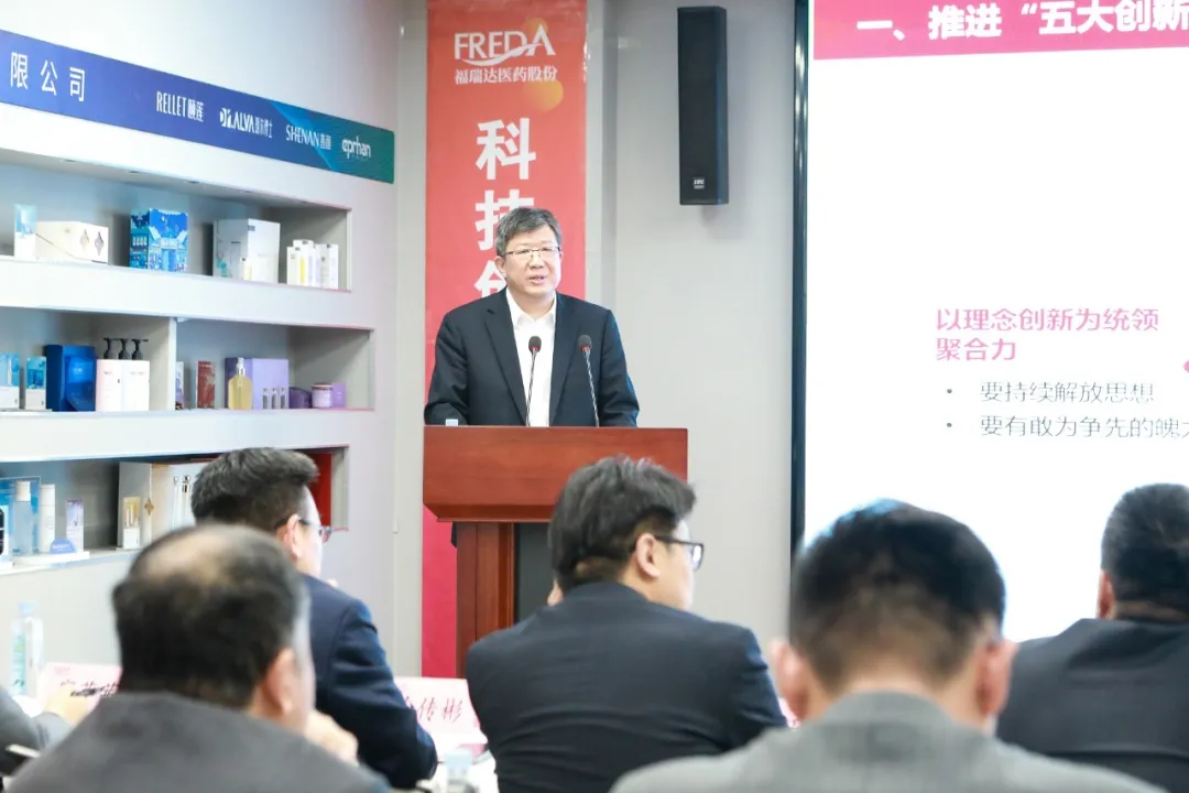賈慶文作題為《錨定“走在前、挑大梁” 奮力“下實(shí)功、見實(shí)效” 推動高質(zhì)量發(fā)展新躍遷》的講話。他指出,2024年,福瑞達(dá)在集團(tuán)黨委的堅(jiān)強(qiáng)領(lǐng)導(dǎo)下,務(wù)實(shí)篤行、銳意進(jìn)取,各項(xiàng)工作提速提質(zhì)提效,向穩(wěn)有韌性,向高有突破,向質(zhì)有提升,向新有動力。同時(shí),要正視在思想解放、機(jī)制創(chuàng)新等方面的問題,切實(shí)補(bǔ)足短板。要順應(yīng)趨勢、內(nèi)求超越,看“形”和“勢”強(qiáng)信心,看“質(zhì)”和“量”明方向,看“新”和“變”練內(nèi)功,把握產(chǎn)業(yè)轉(zhuǎn)型升級新機(jī)遇。2025年福瑞達(dá)要認(rèn)真落實(shí)集團(tuán)年度工作會議部署,一是推進(jìn)“五大創(chuàng)新”,以理念創(chuàng)新為統(tǒng)領(lǐng),“科技+機(jī)制”雙輪驅(qū)動,培育新質(zhì)生產(chǎn)力;“模式+業(yè)態(tài)”雙向升級,培育跨界融合消費(fèi)業(yè)態(tài),搶占首發(fā)消費(fèi)力。二是全面深化改革,構(gòu)建高質(zhì)量發(fā)展體系。完成國有企業(yè)改革深化提升行動,打造生物股份國家“科改企業(yè)”樣板。強(qiáng)化賦能型總部建設(shè),提升運(yùn)營管理和數(shù)字化水平,驅(qū)動業(yè)務(wù)增長。三是爭創(chuàng)行業(yè)一流,塑造高質(zhì)量發(fā)展品牌。深化尋標(biāo)對標(biāo)爭創(chuàng)一流工作,落實(shí)集團(tuán)“六個(gè)品牌”建設(shè)要求,建立集團(tuán)品牌、業(yè)務(wù)品牌和產(chǎn)品品牌“三維一體”品牌管理體系。四是強(qiáng)化黨建引領(lǐng),積蓄高質(zhì)量發(fā)展動能。壓實(shí)黨建工作責(zé)任,夯實(shí)黨建基層基礎(chǔ),抓實(shí)全面從嚴(yán)治黨,大力弘揚(yáng)“用心、務(wù)實(shí)、盡力”的工作作風(fēng),形成搶挑重?fù)?dān)、履職盡責(zé)的創(chuàng)業(yè)氛圍,為集團(tuán)全面打造綜合競爭力強(qiáng)的現(xiàn)代商業(yè)服務(wù)領(lǐng)軍企業(yè)作出新的更大的貢獻(xiàn)。
