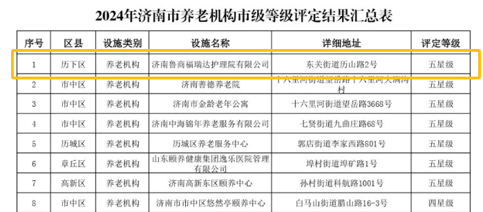 濟南魯商福瑞達護理院再度獲評“五星級養老機構”稱號