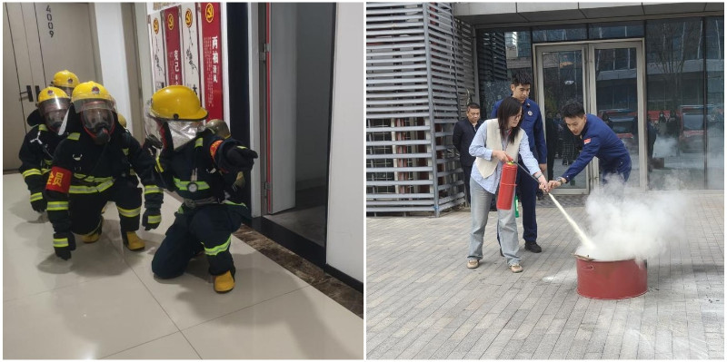 本次活動設置理論授課與實操演練兩部分內容。在消防安全課堂上,濟南市消防救援支隊專家結合火災事故案例,向大家生動揭示了工作和生活中存在的用火用電安全隱患,深入淺出地講解了初期火災處置、電動車充電注意事項及火場逃生自救等知識與技能。火災逃生演練環節,隨著模擬火情警報響起,物業人員迅速響應,手持紅色指揮棒,引導樓內人員按照預定路線有序撤離。隨后,消防隊員講解演示并指導參訓人員學習滅火器及過濾式消防自救呼吸器的使用方法。